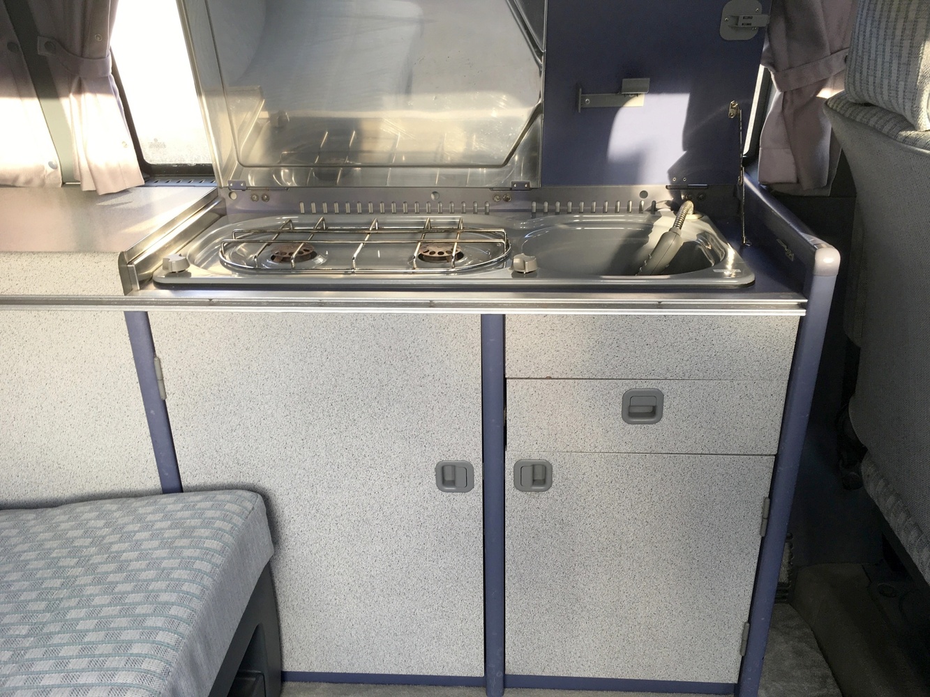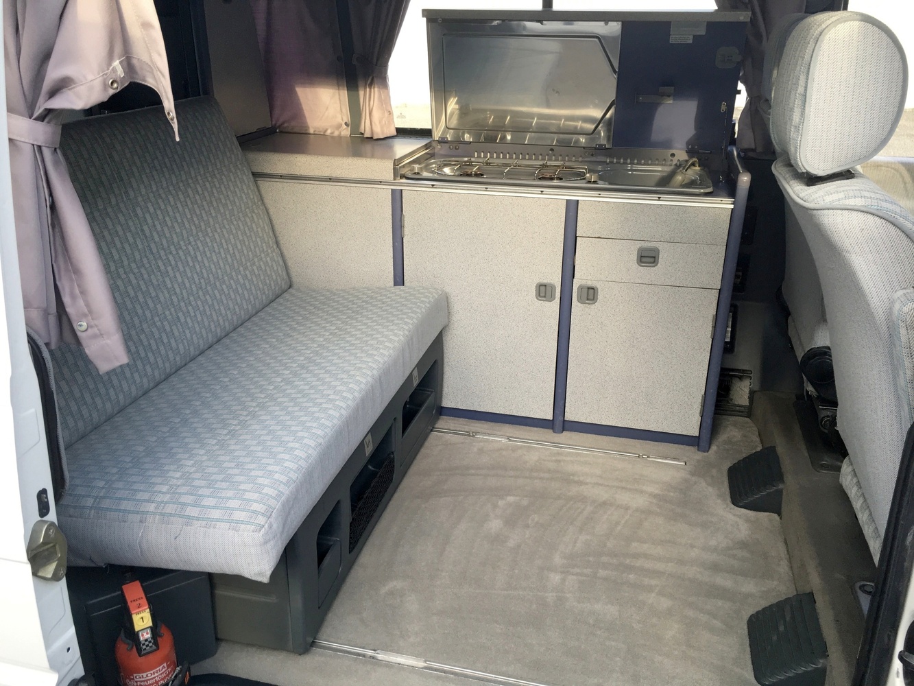 Mitico Volkswagen Westfalia t4 motore 2.4d molto affidabile che rende i viaggi molto tranquilli e consumi contenuti considerando il peso a pieno carico. Permette di visitare e sostare in posti dove con altre tipologie di camper non è possibile o consentito.