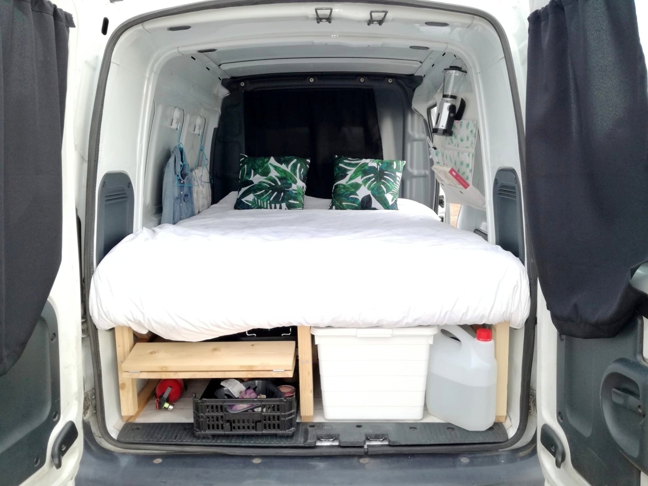 Our Minivan can transport 2 passengers, with a double bed (sofa bed), a small wardrobe, a camping table with 2 seats, a stove, kitchen utensils, thermal refrigerator and solar shower, which will give you the essential confort and independence during your vacation.