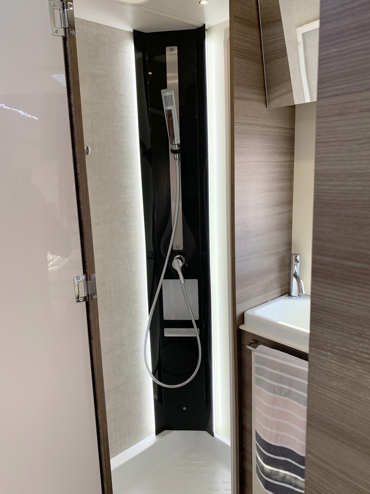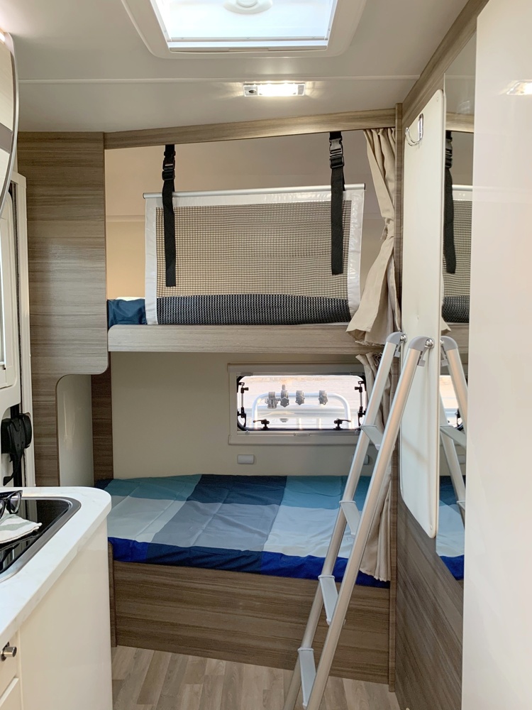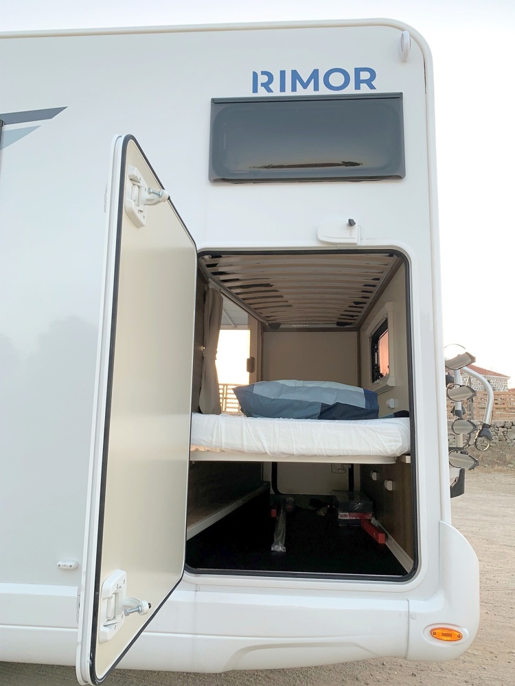 Nuestra autocaravana es ideal para viajes en familia o con amigos al tener 7 plazas sentadas y 7 plazas para dormir (incluye red de protección para camas en altura). Para viajes de 4 personas es super cómoda porque es posible dejar las camas montadas y disfrutar del comedor con 2 mesas. Ni qué decir de una romántica escapada en pareja para disfrutar espaciosamente. El gran espacio en la bodega y el portabicicletas (4) te permitirá llevarte todo lo que elijas en tu viaje y actividades al aire libre. También podrás disfrutar de estar a tu la sombra bajo el amplio toldo. Por la noche podrás disfrutar del interior iluminado con led, inclusive en la ducha que además tiene un soporte magnético para su regulación. Y para una máxima seguridad del interior cuenta con safe-door en todas las puertas.