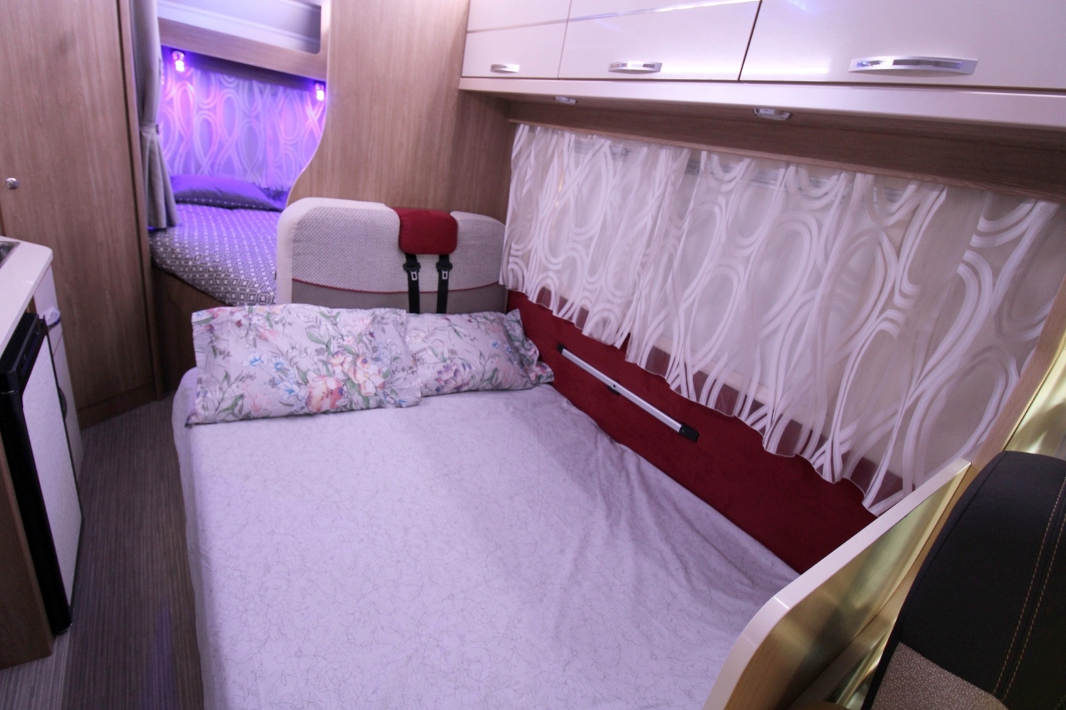 Located in the rear of the vehicle, along one of its sides. Takes less room than an island bed, with all the comfort.