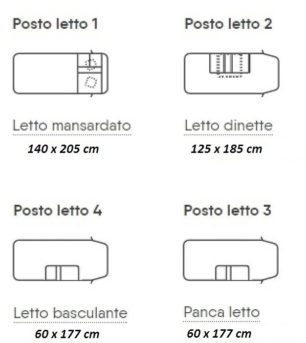 Located in front of the vehicle, it is best suited to children or as a temporary bed. It is usually made up by lowering the dining table.