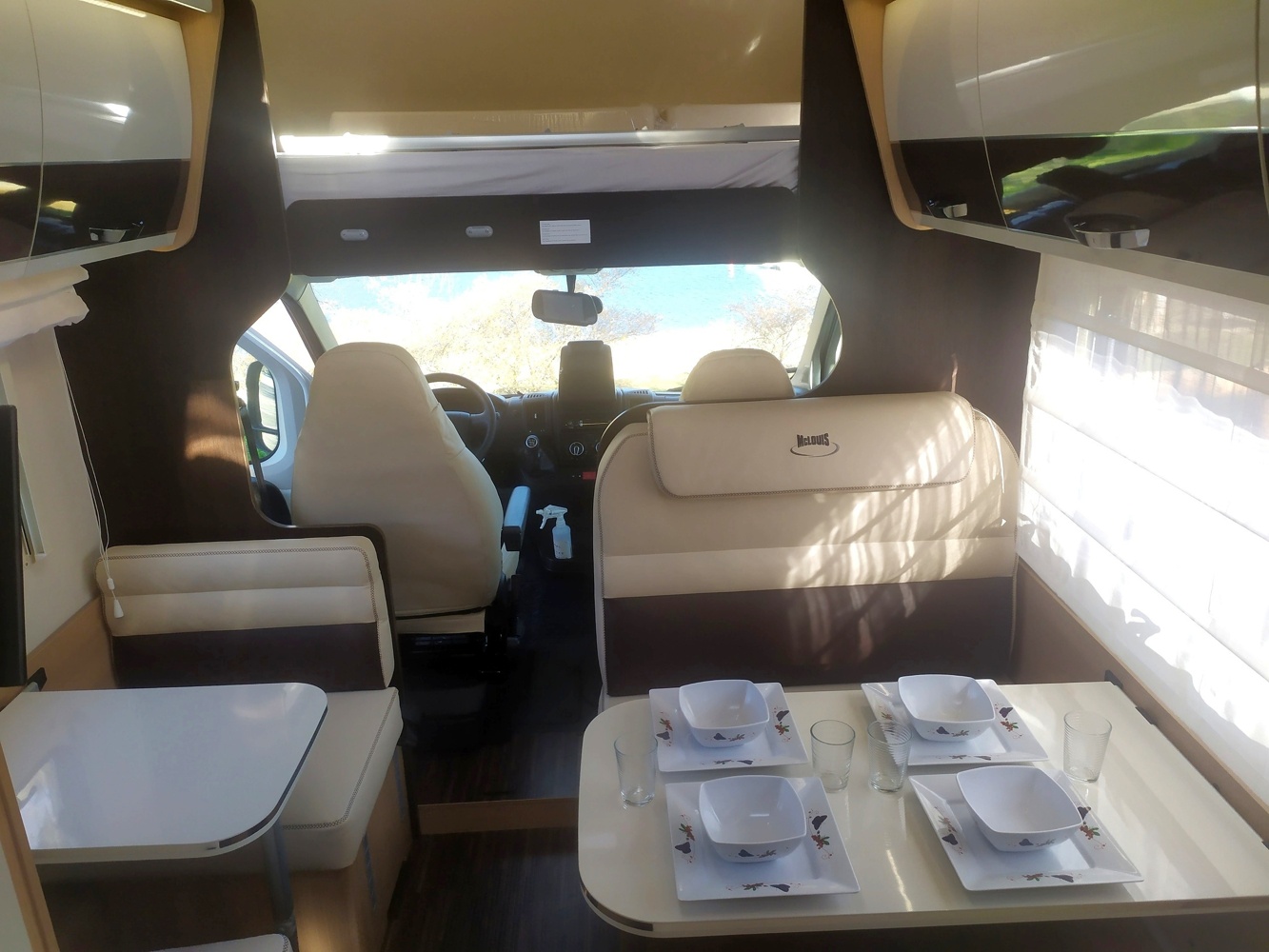 McLouis GLAMYS 222 capucines neuf de Mars 2021 répondant spécifiquement aux familles nombreuses et aux vacances en groupe. Homologué 7 places couchages et 7 places carte grise. Vous disposerez en terme de couchages de deux places dans la capucine, deux places superposées à l'arrière, deux places dans la dinette principale et une place enfant (1.70m) dans l'autre dinette. Le véhicule est grand confort, équipé double vitrage, grand frigo et congélateur. TV - lecteur DVD, panneau solaire, Tout éclairage LED, porte 4 vélos. Autoradio tablette 10', Android vous permettant d'obtenir Téléphone main libre, GPS, Internet, Camera de recul, Musique avec plus de 600 morceaux préenregistrées. La cuisine et la salle de bains avec douche séparée / wc et lavabos vous garantissent confort et bien-être. Vous bénéficierez également d'un GPS Europe. Matériel de camping inclus. Grande banne 4x3m vous permettant de vous abriter de du soleil comme de la pluie. Boules de pétanque, parasol, roue de secours (rare sur les camping-car). De même, vous aurez un document établi par mes soins faisant 14 pages vous expliquant toutes les fonctions du camping-car, reprenant ainsi toutes les explications données à votre départ, au cas ou vous aillez un oubli ? si vous désirez faire une bonne idée du véhicule et réaliser une visite à 360° du camping-car, recopiez le lien ci-après : https://www.mclouis.com/BE-fr/Catalogo/Modello/293875/Glamys-222